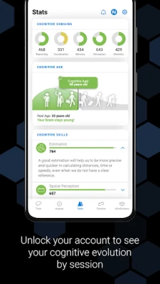 Monitor your daily and weekly cognitive score stats. Set a goal for yourself to increase the score through multiple brain training sessions. Develop a plan of action to train and practice as often as you'd like. Conveniently keep track of your brain health, including an estimation of your cognitive age. You'll even see a list of cognitive domains to show you which ones you excel in the most.