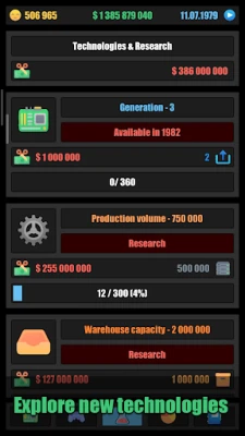 • In the research panel you will be able to explore the new generation of consoles, increase production and stock. And also to explore a new technical process.