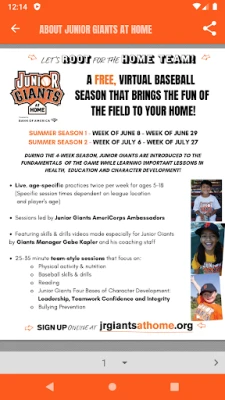 Junior Giants App Features: