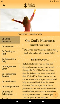 The more-than-fifty prayers provided here are split into five groupings: joy, transition, caring, emotion, and crisis. Each set concludes with one focusing on a particular aspect of God’s loving nature.